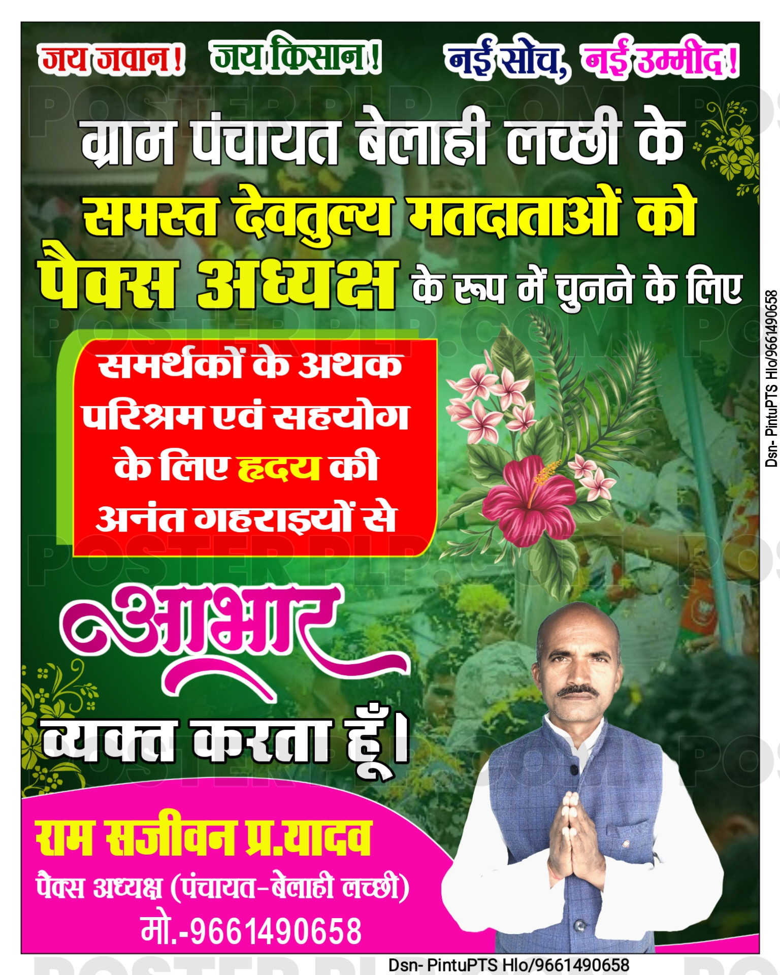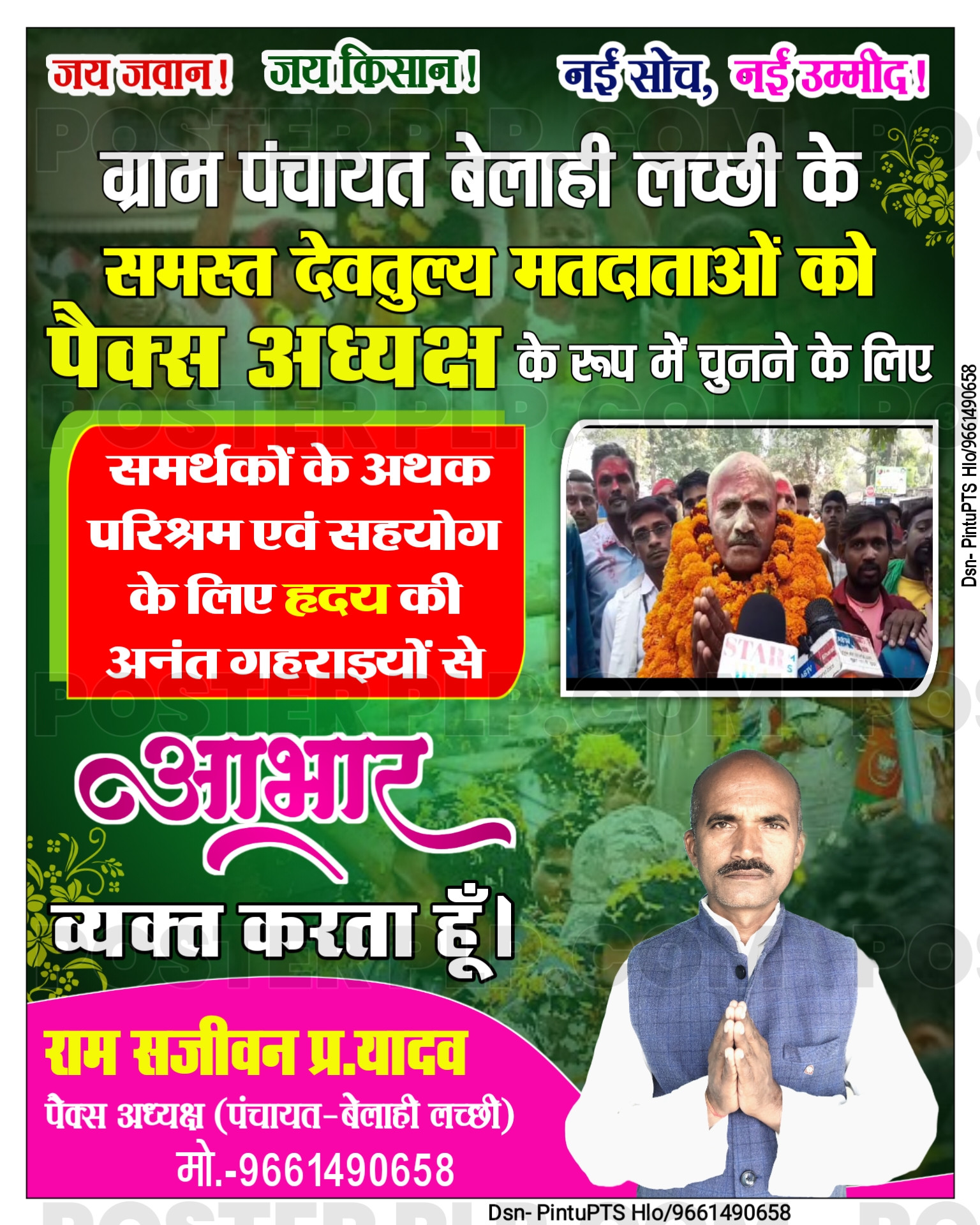 चुनाव जीत की आभार शुभकामनाएं बधाई पोस्टर बनाएं